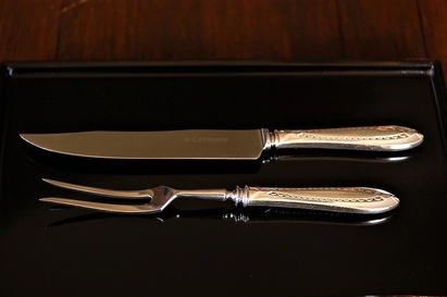 アールデコデザインが美しいミートカーヴィングナイフとミートカーヴィングフォークのセット。