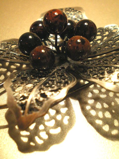 大きなブローチに天然石が7個、蕊を表現しています。