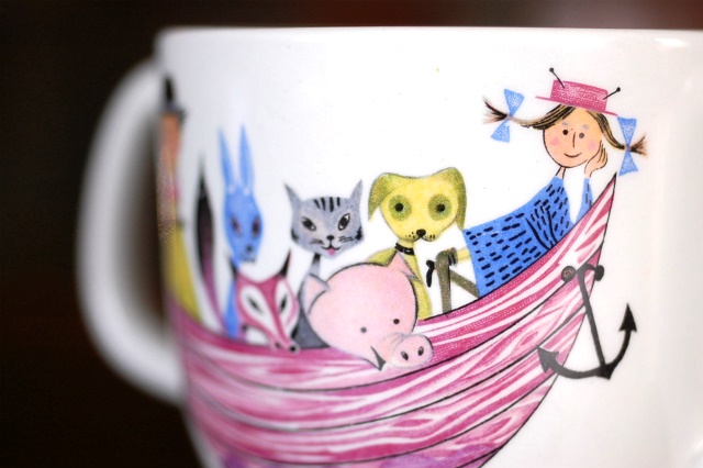 挿絵を担当したStig Lindberg/スティグ・リンドベリが絵本とセットに販売した磁器製チャイルドマグ。