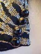 煌びやかな黒ラメ金ラメ銀ラメストライプのパーティーブラウスです。