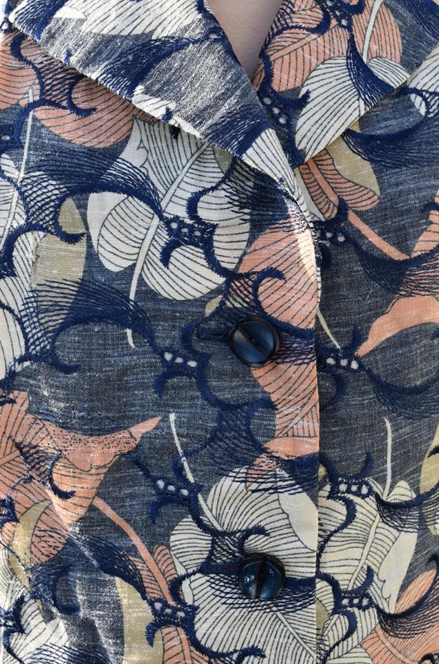 おとなしい素地に白と薄いオレンジのサイケ調の葉っぱが描かれ、