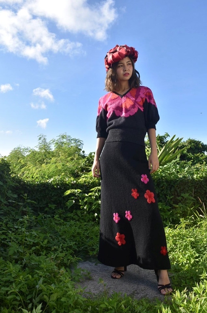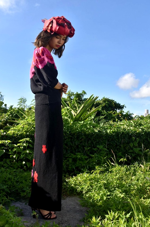 花柄のニットのトップスとロングスカートで、初めからセットだったかは不明です。