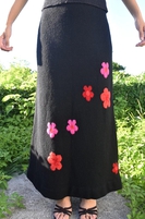 スカートはレトロな花柄がランダムに散らばっていて黒地に映えます。