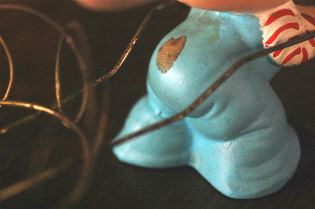 土人形系の焼物にハンドペイントされています。