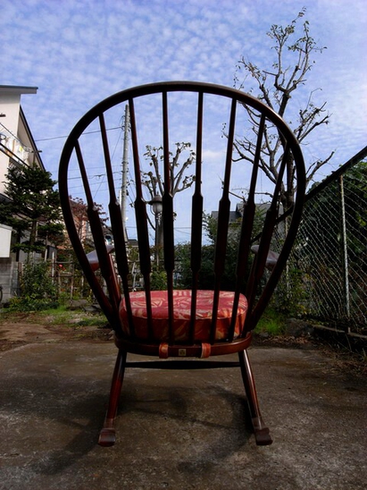 こちらは丸みを帯びたウィンザーシルエットが特徴の大きなロッキングチェア、