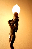 炎を模った電球は現役でくもりガラスの為神秘的にやさしく光ります。