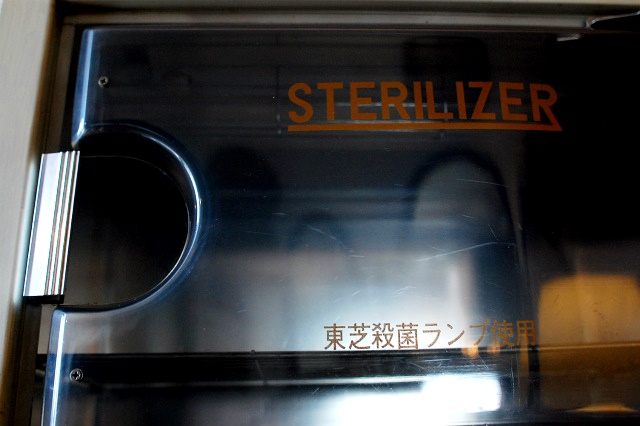 <Sterilizer><東芝殺菌ランプ使用><消毒済>等の文字が入っています。