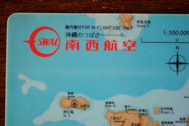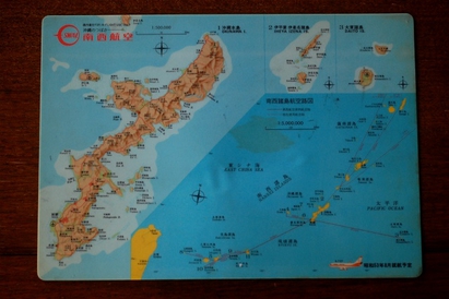 沖縄の離島を結んでいた南西航空(現日本トランスオーシャン航空)の路線図下敷き