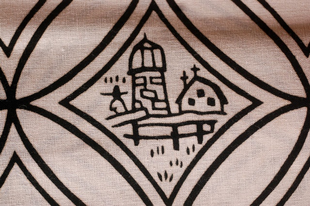かわいい北海道らしい絵柄が所々に入った綿の浴衣地反物。
